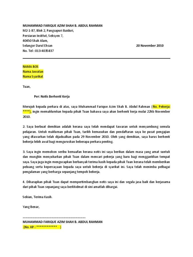 Oct 24, 2021 · contoh notis berhenti kerja 7 hari sebulan atau mengikut tempoh dalam notis berhenti kerja sebulan.